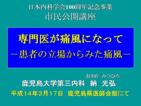 3人の演者の最後の演者として、私は患者の立場からみた痛風の話をしました。